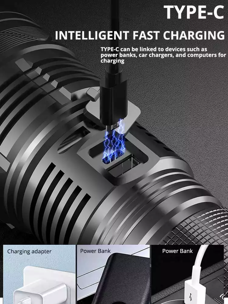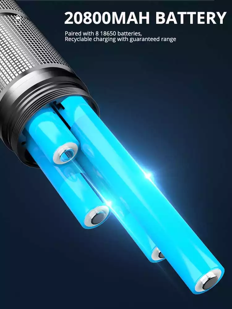Rechargeable Flashlight High Lumens, 20800mAh large capacity Ba-tt-ery for a long life, this LED rechargeable flashlight could run up to 48-72 hours. USB input port allow you quickly charge the flash light and the USB output port help this led flashlight work as a emergency power bank to charge your phone, camera and etc.
