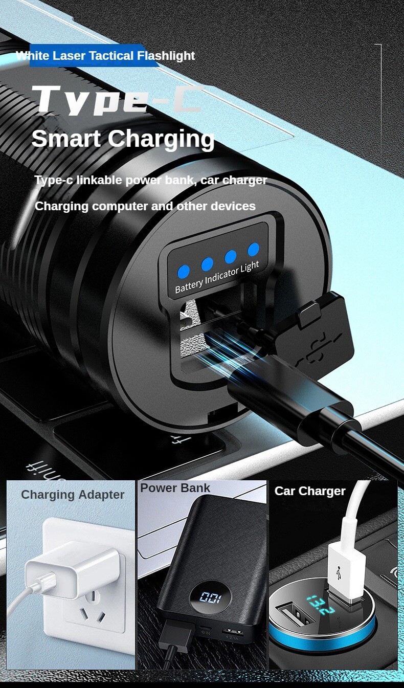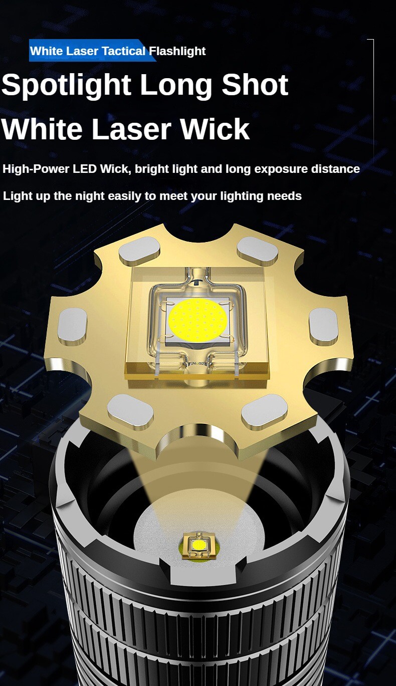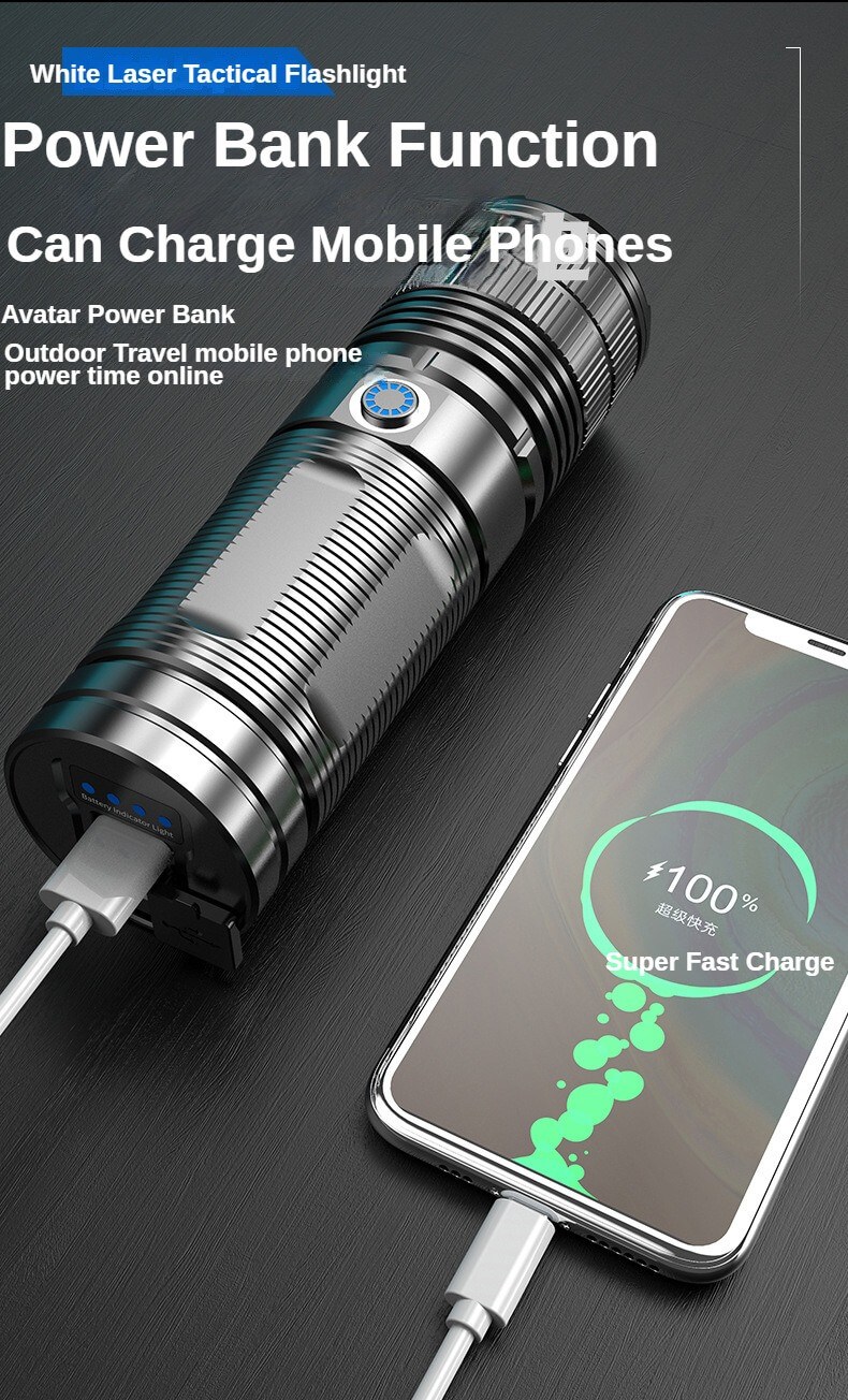 Get ready to light up any dark situation with our High Quality Super Bright Aluminum Flashlight. This 24W LED flashlight is designed for maximum brightness and durability. It is made from high-quality aluminum and features a USB rechargeable system with 3*18650 lithium batteries for long-lasting use. The compact and portable design makes it easy to carry in your pocket or backpack...