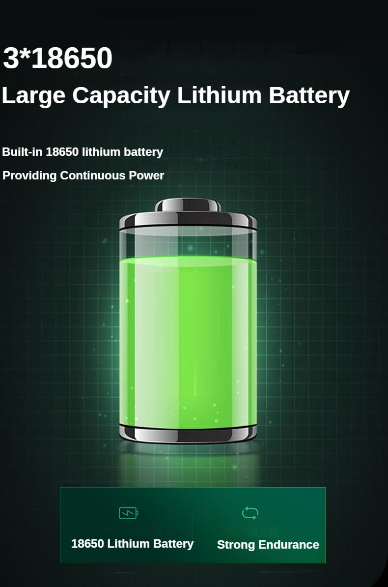 • Rechargeable (3*18650 Lithium Battery)