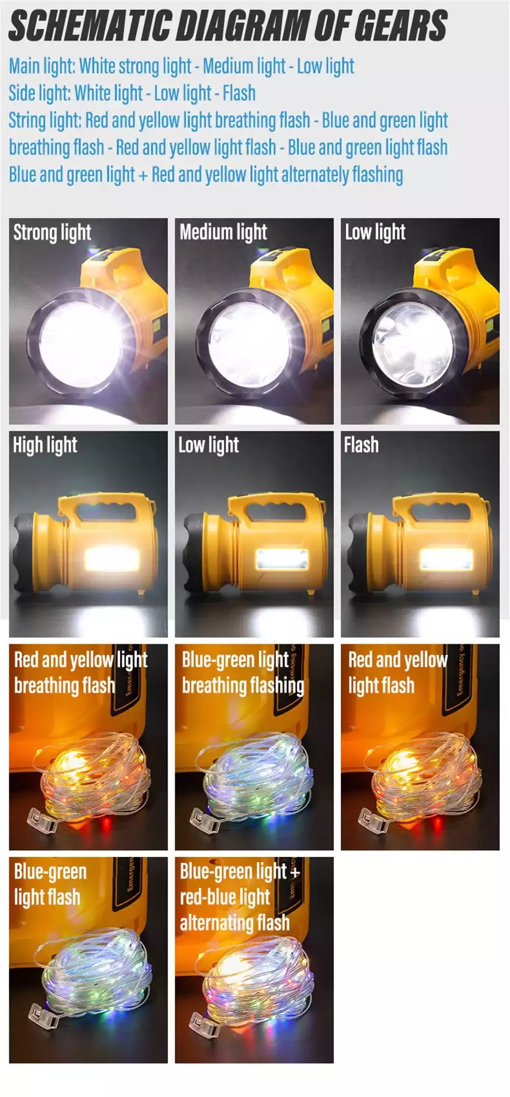 String lights: Red and yellow light breathing flash,blue and green light breathing flash, red and yellowlight flash, blue and green light flash, blue and greenlight+red and yellow light alternate flash