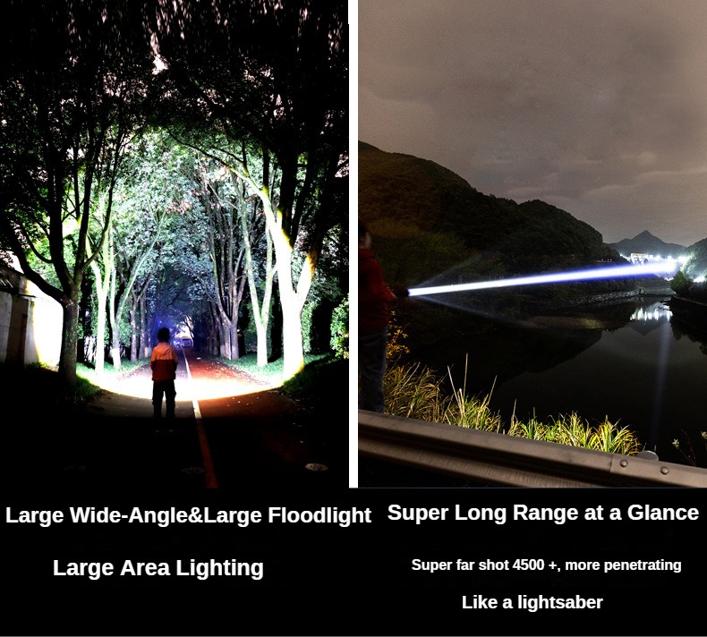 Crafted with high-quality materials, this flashlight is built to last and withstand the toughest conditions. With a powerful beam that can reach up to 3000 meters, you'll be able to see everything clearly, no matter how dark it is.
